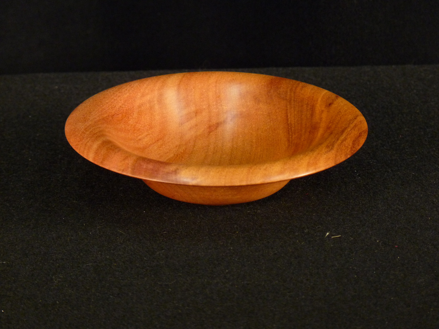 The first bowl was a small 2″x6″x6″ blank of redheart that I got in a mixed lot from Westpenn. I had a pre-plan to turn a thin, flared, undercut lip with a shallow bowl. The redheart was ideal for this because of its tight grain. Since it doesn’t have any pronounced figure, the form and the color are the stars of this show. The wood didn’t pose any problems turning, responding equally well to the gouge and the scraper (for the final smoothing). I strived to get the lip as thin as possible, while still having it provide a handhold. Since the wood was dry, I didn’t have any movement as it got thinner to worry about. The only finish was a tripoli polish after sanding to 400 grit.