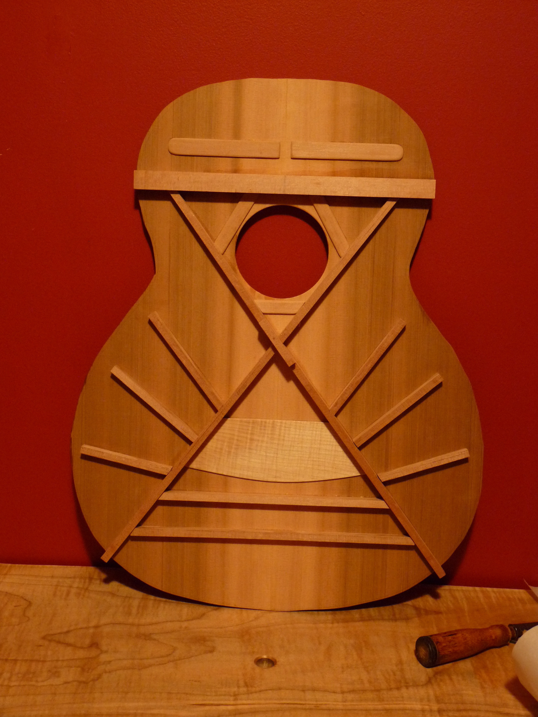 The finished top provides enough support to counteract the pull of the strings without deforming, while being light enough for maximum sound volume and tone. (At least that’s the goal!)